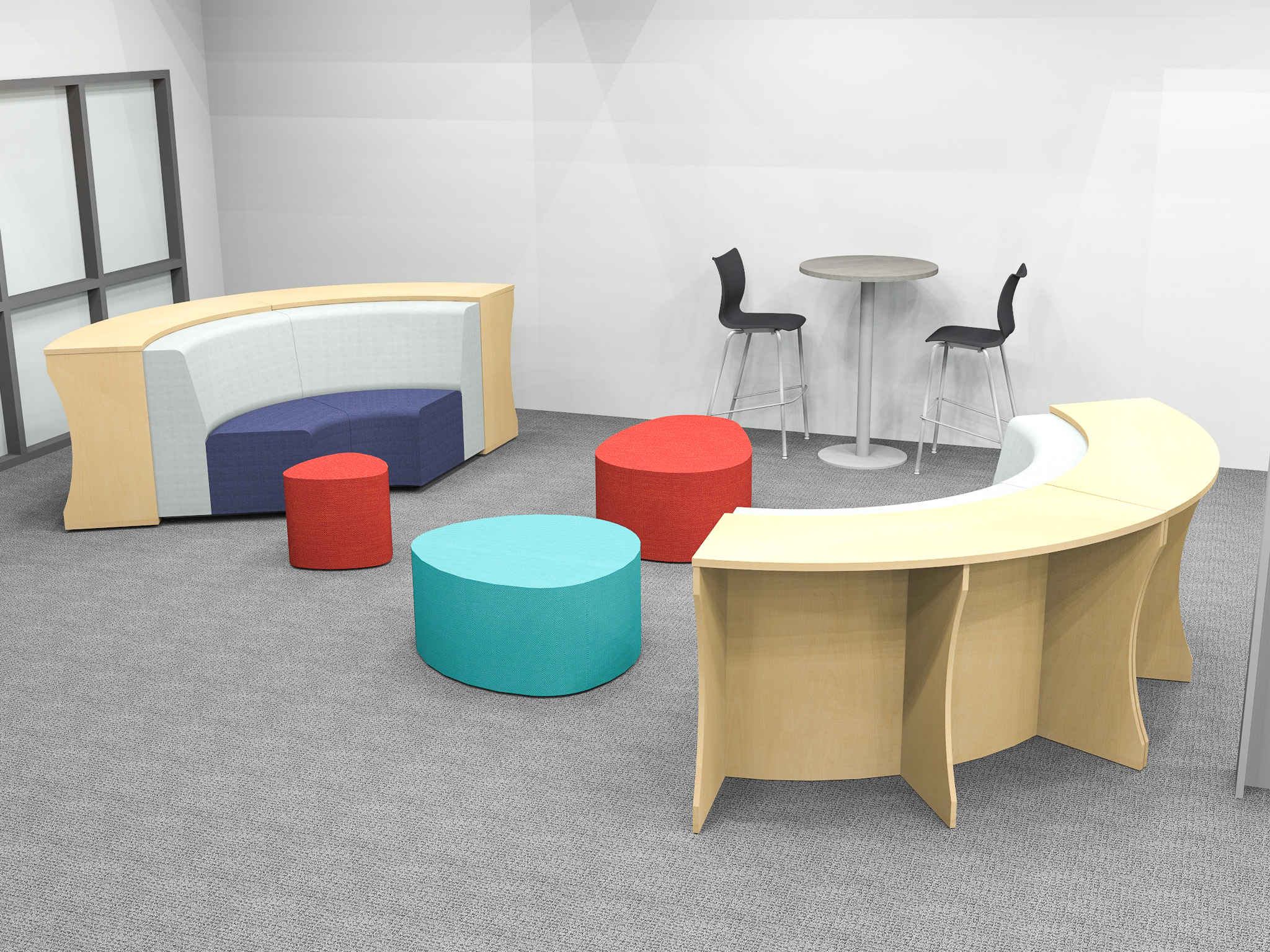 In today’s learning spaces there are a variety of collaborative spaces throughout the school. We designed the Fairivew Table with a 45-degree radius to pair with popular soft seating options on the market. Add functionality to soft seating areas with the Fairview Table.
