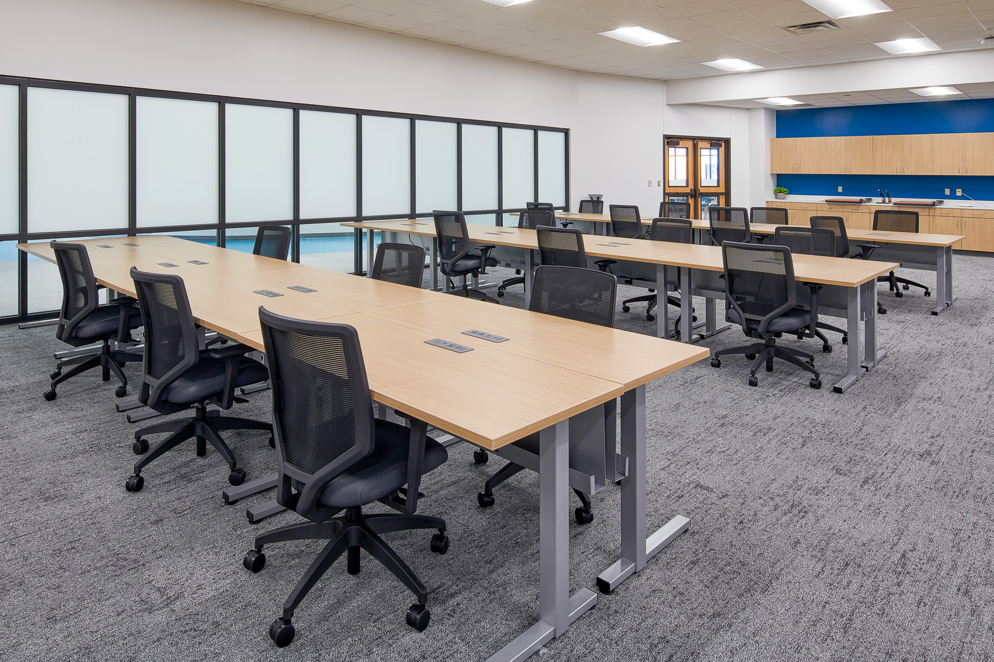 Huron Electric Adjustable Height Tables offer a stylish and sleek aesthetic for your space. The Huron table has a unique square leg design, that coordinates with other Huron Table bases, like fixed leg options, giving your space a coordinated and professional look campus wide. It also offers 16 different base paint finish options to choose from.